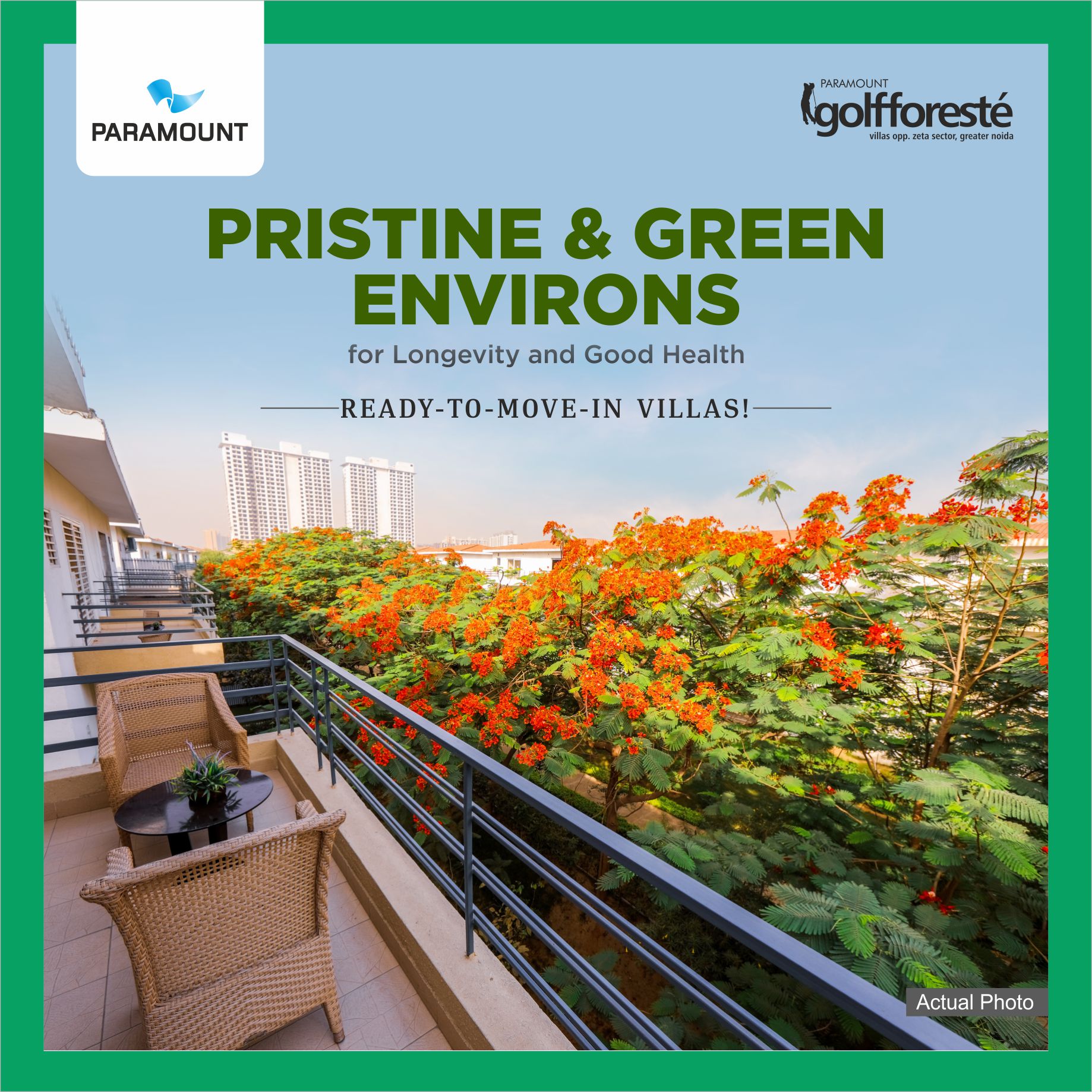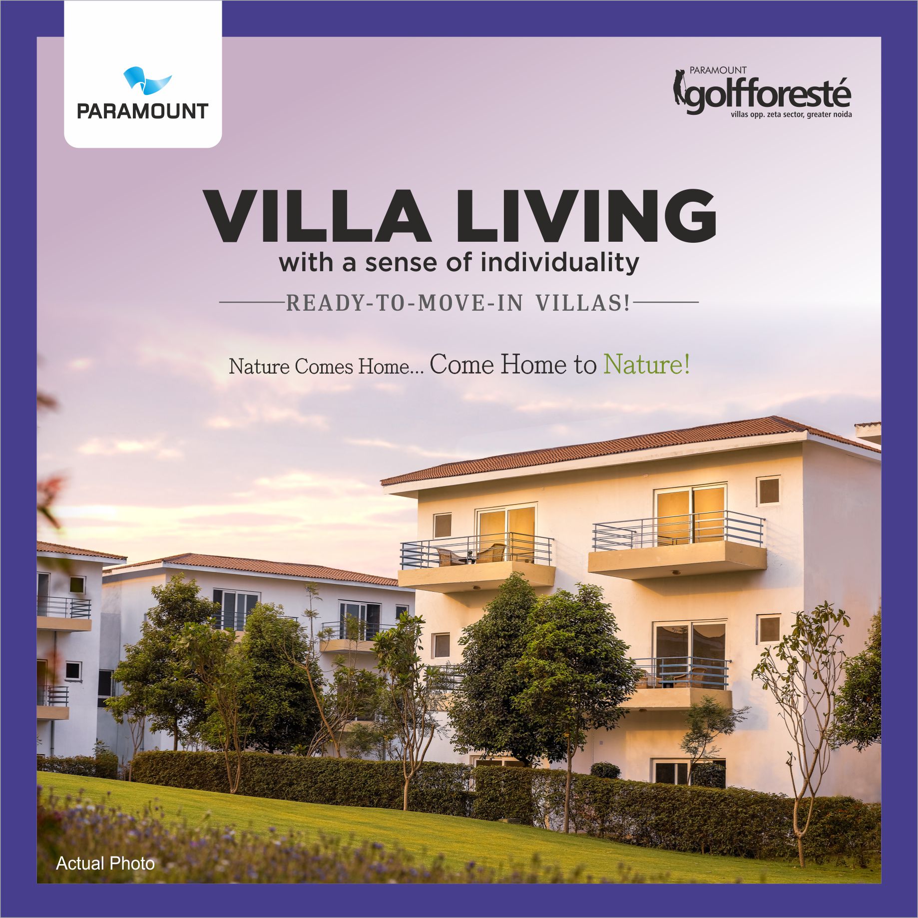 Paramount Golfforesté is a low-density residential township sprawling over 90acres* of land that changes everything from the way of living in the house to the definition of a new concept of functional elegance. Designed by the international Architecture firm Surbana International, Located near 130 meter* wide road Paramount Golfforeste and close proximity to proposed Noida International Greenfield Airport “Jewar Airport” making it one of its kind residential township that offers Luxurious villas for sale in Greater Noida, studios, and apartments. Beautiful green fields and peculiar landscape design offer complete privacy to every resident. Every room, and every material proposal has been carefully selected to deliver a lifestyle experience of a lifetime that you and your family always dreamt of. Places that speak directly to the soul, whispering calm, elegant, and refined words. The exclusive Tailor-Made Villas in Greater Noida by Paramount Group allows you to choose the type and place it in the building, as well as customize interiors and finishes. So your home will be truly "tailor-made".